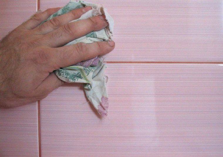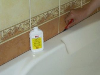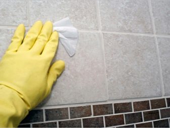 Wash tile can be using a cotton swab or disc moistened with such a solvent. The tool is carefully applied to the silicone and left until the sealant swells up to such a state that it can be easily removed from the surface. This usually happens in about an hour. With a sharp blade, the swollen material is hooked and removed from the tile in large or small fragments. If necessary, this procedure can be repeated.
