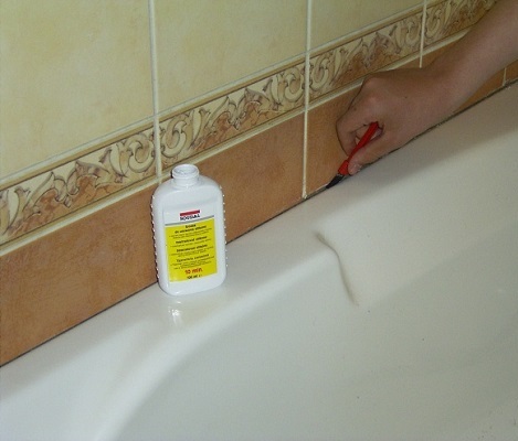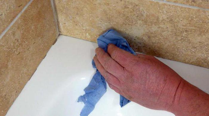 Remove sealant residues may be necessary not only in the careless handling of the cylinder. After several years, the silicone joints of the ceramic lining of a bathroom or kitchen begin to break down, become dirty, lose their sealing and water-repellent properties. In this case, the old seam is removed by one of the proposed methods. The surface is thoroughly cleaned and degreased. Next, a fresh sealing layer is applied.