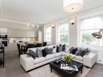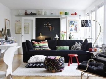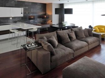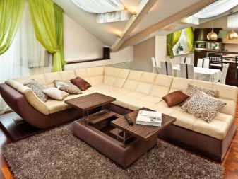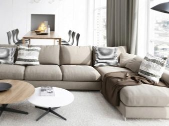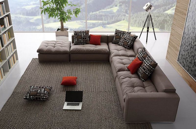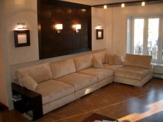 If the owner of the living room wants to have a big place to sleep and rest, but there is not enough space, it is better to give preference to the corner sofa. Such furniture will save space, as it has a great place to sleep. When choosing a large sofa, it is important to focus on how easy it will be to care for its covering in the future. What matters is the degree of convenience of the seat, the functionality of the design, the availability of places where to store clothes.The most ideal option for small rooms is furniture with a modular system.