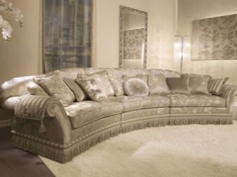 The minimalist style implies simple geometric shapes and the absence of armrests in most cases. Baroque style has similarities with the Baroque style. It is characterized by a large number of decor, various patterns, high level of armrests, carved legs. Fans of original solutions can purchase a semicircular sofa.Such a place would be ideal for meeting in the living room of loved ones. For business meetings in the house more suitable straight sofas. Huge seating and sleeping places are a great buy for a large family. U-shaped furniture options are suitable for medium-sized living rooms and small rooms.