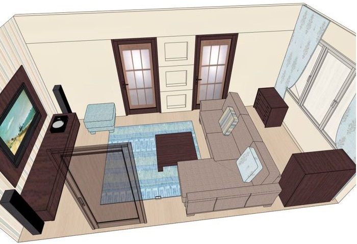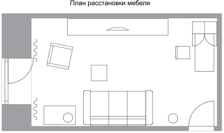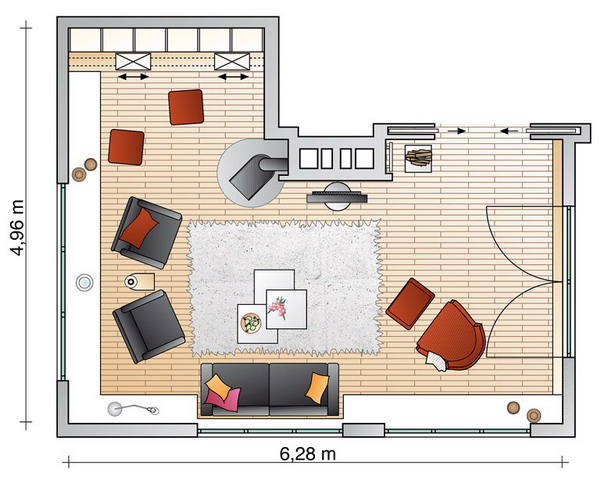 Between the objects must be a space for free movement around the house. The entrance to the room is better to make free. The sofa is better not to place near windows or doors. So will the feeling of comfort.