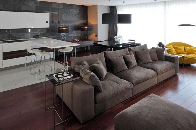Large sofas in the living room are often used as they are ideal for receiving guests and filling up space. Furniture complements the design of the room. Therefore, it is important that the seating position is not only functional, but also decorates the interior.