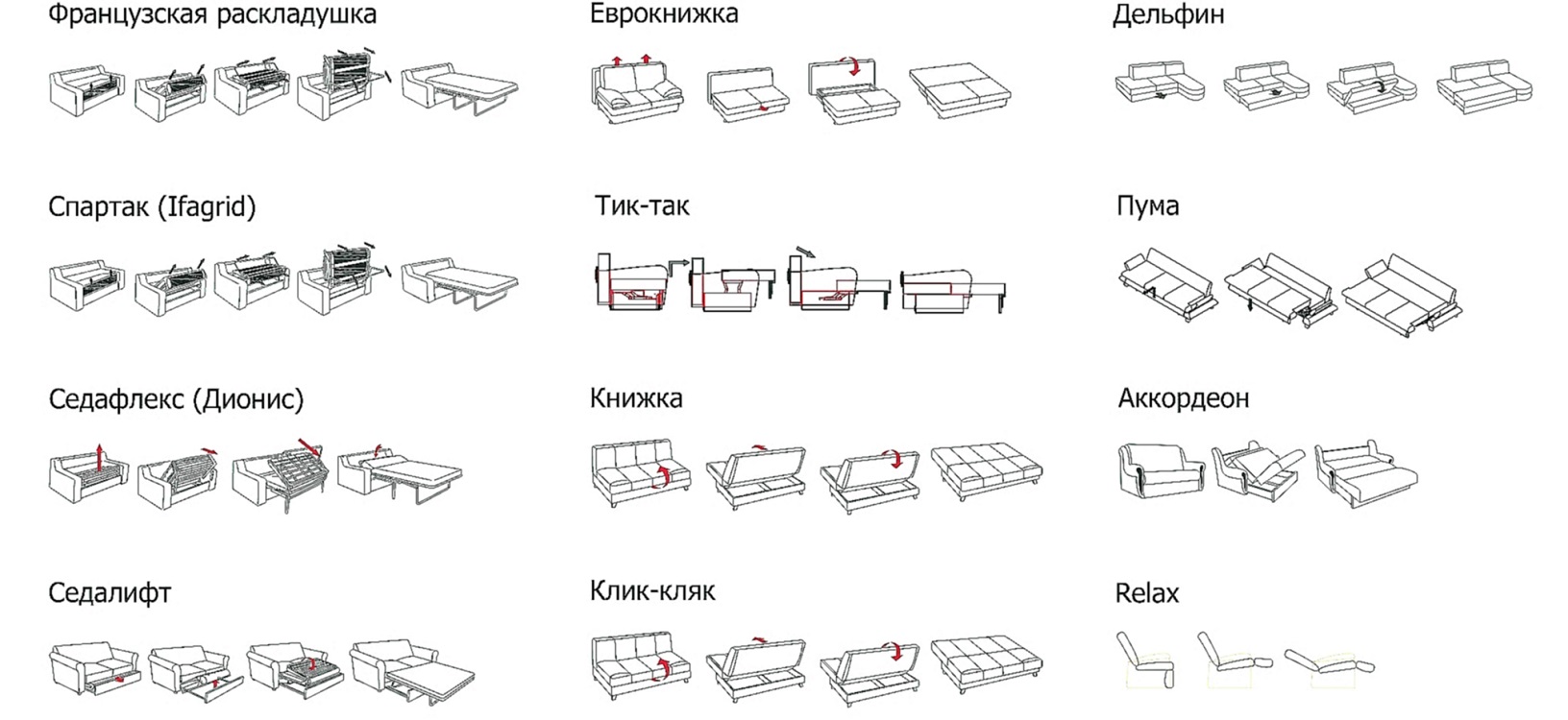 Regardless of the size of the room in the living room, the owner of the house can choose the furniture that fits best. It can be folding sofas, or furniture without a folding mechanism. Sofas can be divided according to the principle of how the mechanic works.
