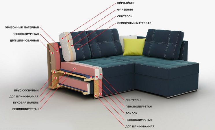 Material from coconut fibers or thermofibre is considered the best as a filler. Polyurethane quality is much lower, so the furniture keeps the shape somewhat less. If the sofa has a high quality filler, in function it will not differ from an orthopedic mattress. It is necessary to pay attention to the quality of the upholstery.