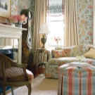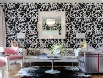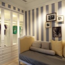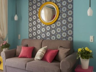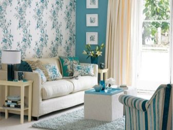 In this case, all materials for finishing is better to choose monophonic or with small inconspicuous patterns. Perfect print, which will overlap with the upholstery of furniture and other textile elements (curtains, sofa cushions, rug).