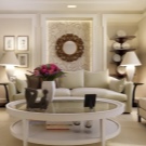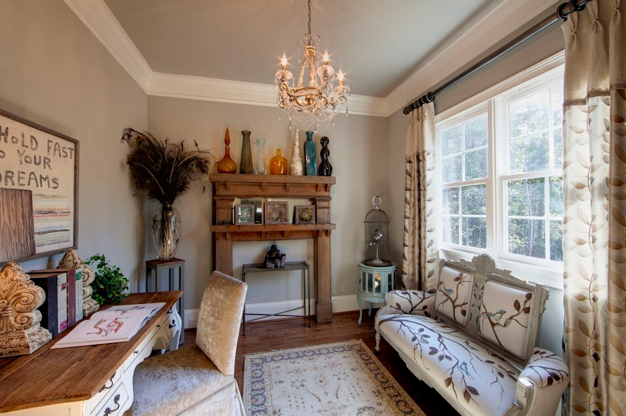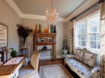 The interior is complemented by elegant dressers, high-legged furniture, a fireplace with a bright facade. The decor items are vases and porcelain tableware. Light colors expand the space and fill the interior with freshness. In the room you can put fresh flowers, which will be a highlight of the interior.This is a good option to give.