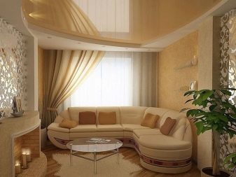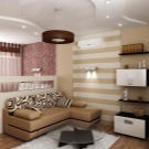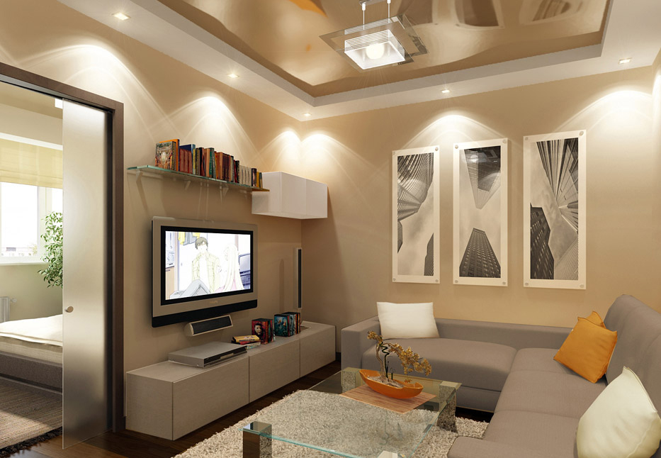 Feature of the interior of a small living room is the presence of a large number of light sources.It must be artificial lighting devices. It is important the absence of sharp contrasts and contradictions. The lines should be smooth and concise.