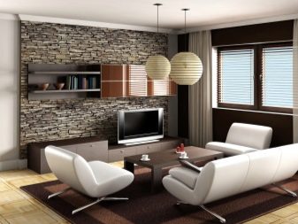 In a small living room, stone and porcelain can be used for decoration, although these materials are cold. It is better if they are glossy or well polished: this will make the room taller. But such hard and traumatic coatings are completely inappropriate for families with small children.