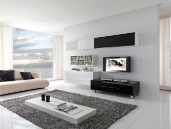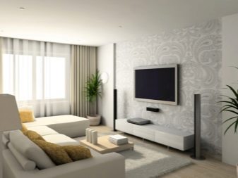 TV is better to hang on the walls of the living room, preferring more modern flat models. The sofa area should be placed under the window, giving up the sides and backs. This design, according to designers, will be very unusual and functional. Under such a sofa you can organize a storage system.