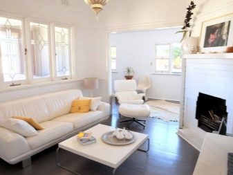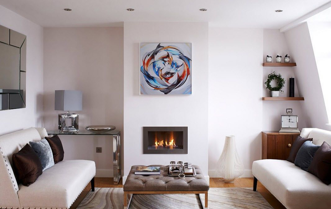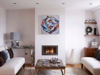 Although the interior involves the abandonment of large parts, you can put a fireplace in the living room. It should not be a large stationary model, but its mini-model. Perfect fit decorative models with white facades.