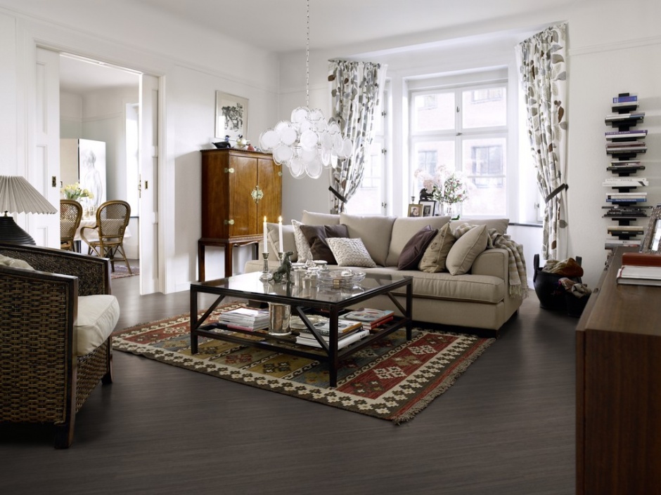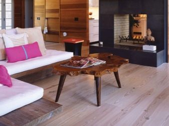 For the decoration of the living room, you can use coatings of natural wood shades.They bring together with nature and fill the interior with harmony. This design is suitable for the hall Khrushchev, a small living room of a private house.