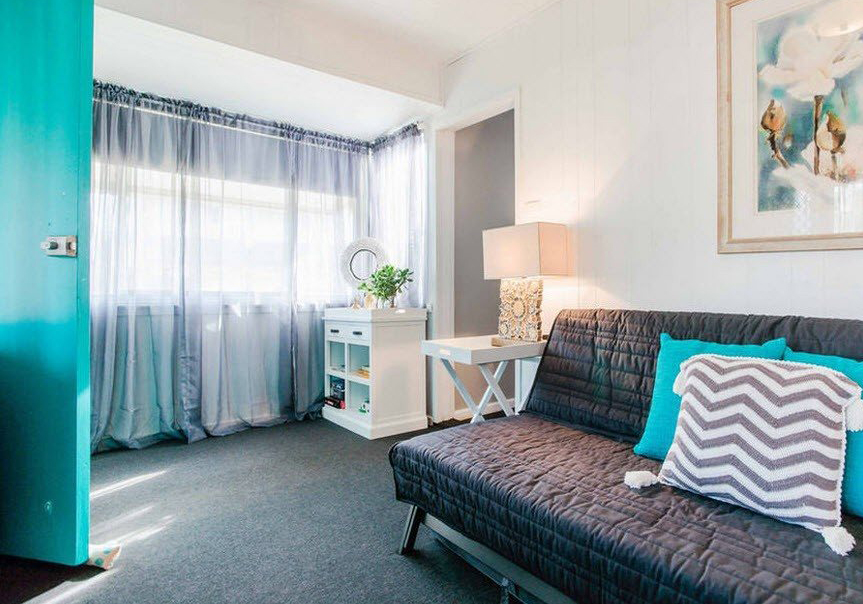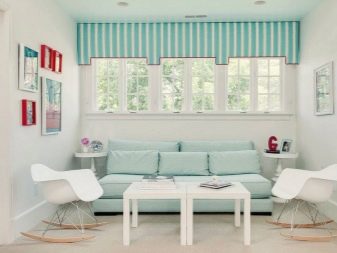 As colors, they choose two basic shades with which they beat the room, practically without adding other tones, in order not to overload the interior. In this case, more often they use gray, beige, blue colors and their not saturated shades.