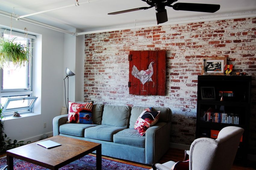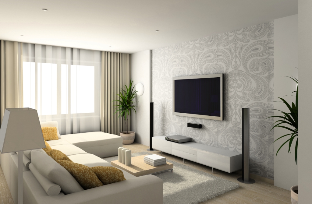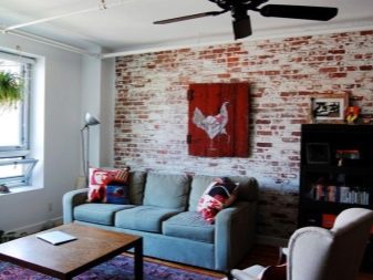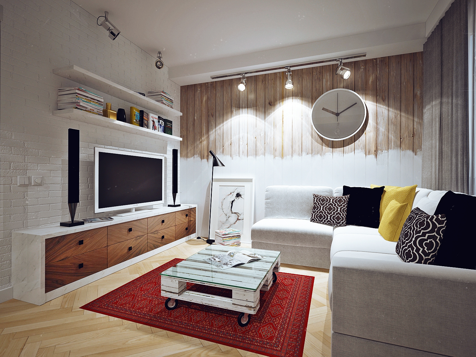 The walls (especially the two side) should create the background of a small living room.With the right finish, they have a minimal amount of color accents and bright spots. Therefore, it is suitable smooth wallpaper or coating for painting. Standard wall paint is acceptable. You can use thin plastic panels or artificial stone, but not on all walls.