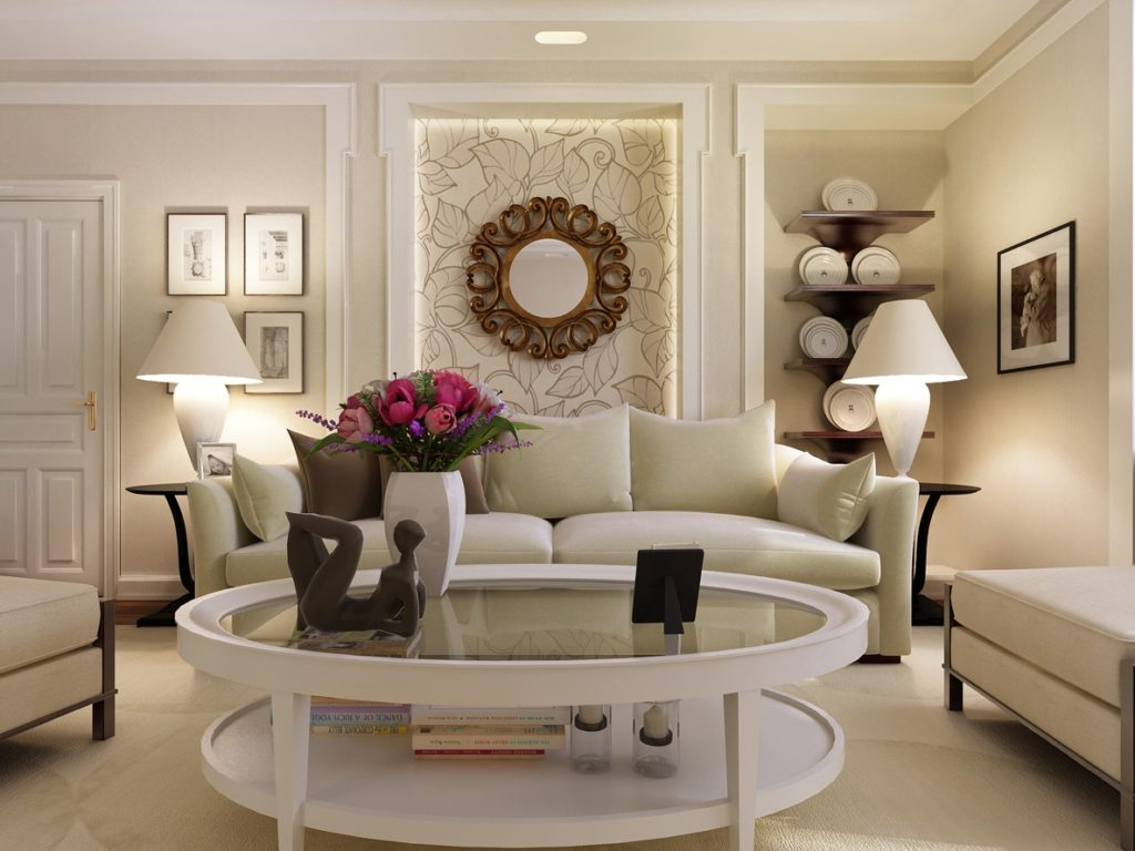 Classic involves the use of neutral shades and calm colors without contrast. In this case, the materials used are mainly natural. Although this does not prevent to complement the interior of the living room with modern innovations from the sphere of electronics. Chandelier and wall lights are better to choose from crystal or glass. The room should be filled with white light.