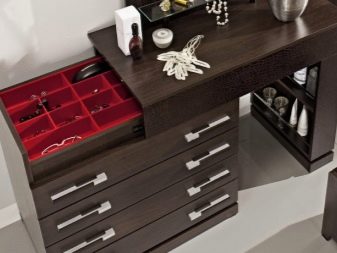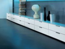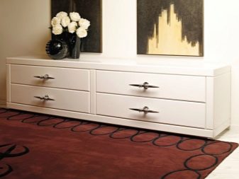 Chest of drawers with additional shelves a lot. If you do not want the room to appear visually cluttered, you should choose a transforming model. For low and long storages, it is advisable to use bolted aluminum legs or composite materials.