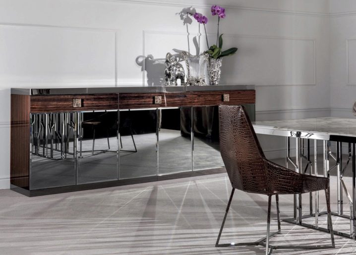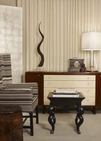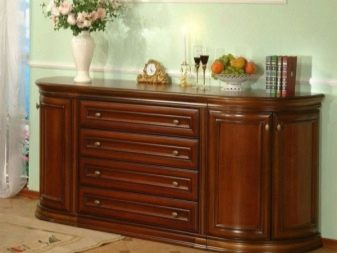 Stylish chests of natural wood become more beautiful if they are supplemented with carved elements and metal inserts. The use of such decorations should match the style of your living room, in case of doubt it is better to consult with the designer. Snack chests with built-in refrigeration equipment for storing perishable foods will cost significantly more than ordinary ones.If the set includes chairs combined with furniture, you can use the dresser as an improvised desk.