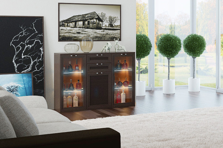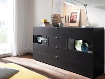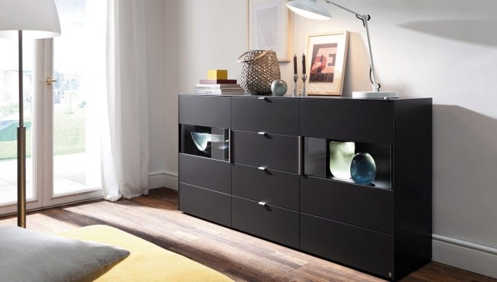 Low long chest of drawers at an affordable price often made of chipboard or MDF. If you want to buy solid wood furniture, you have to pay a large amount. Decisive considerations when choosing - the material possibilities and the size of a particular living room. A product of small height is more practical than a large one: you can use it as an improvised seat with the cushions.