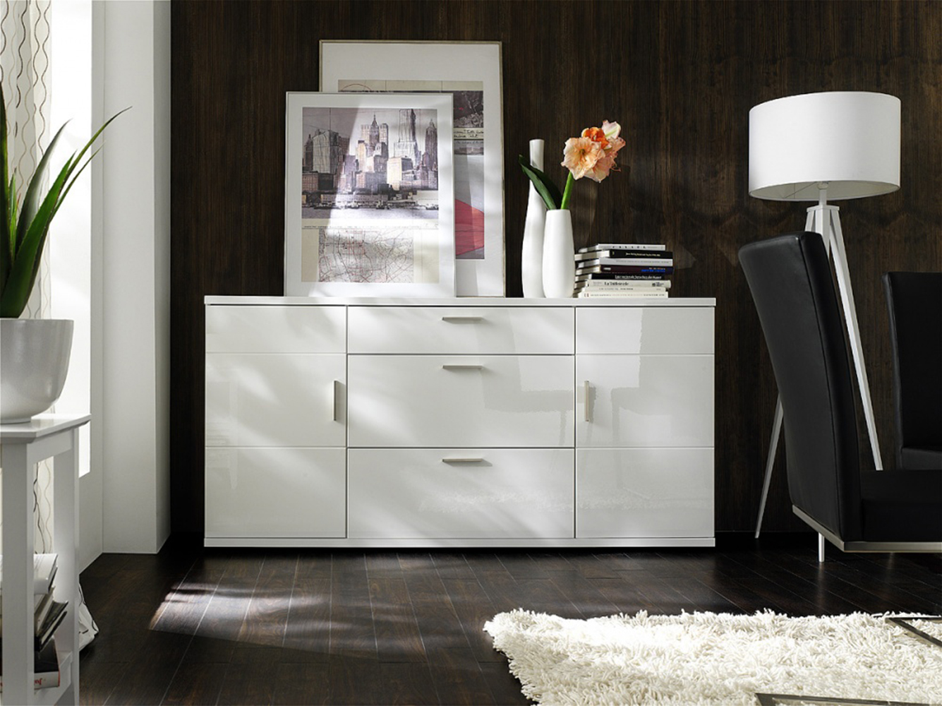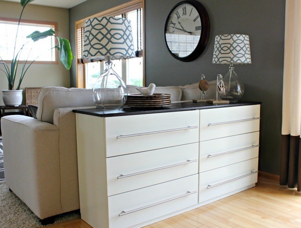 Long dressers in the living room interior