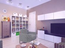 For example, open storage systems will help to make a portrait of a family from favorite accessories: souvenirs brought from various countries of rest, favorite places of the world in paintings, photographs in frames.