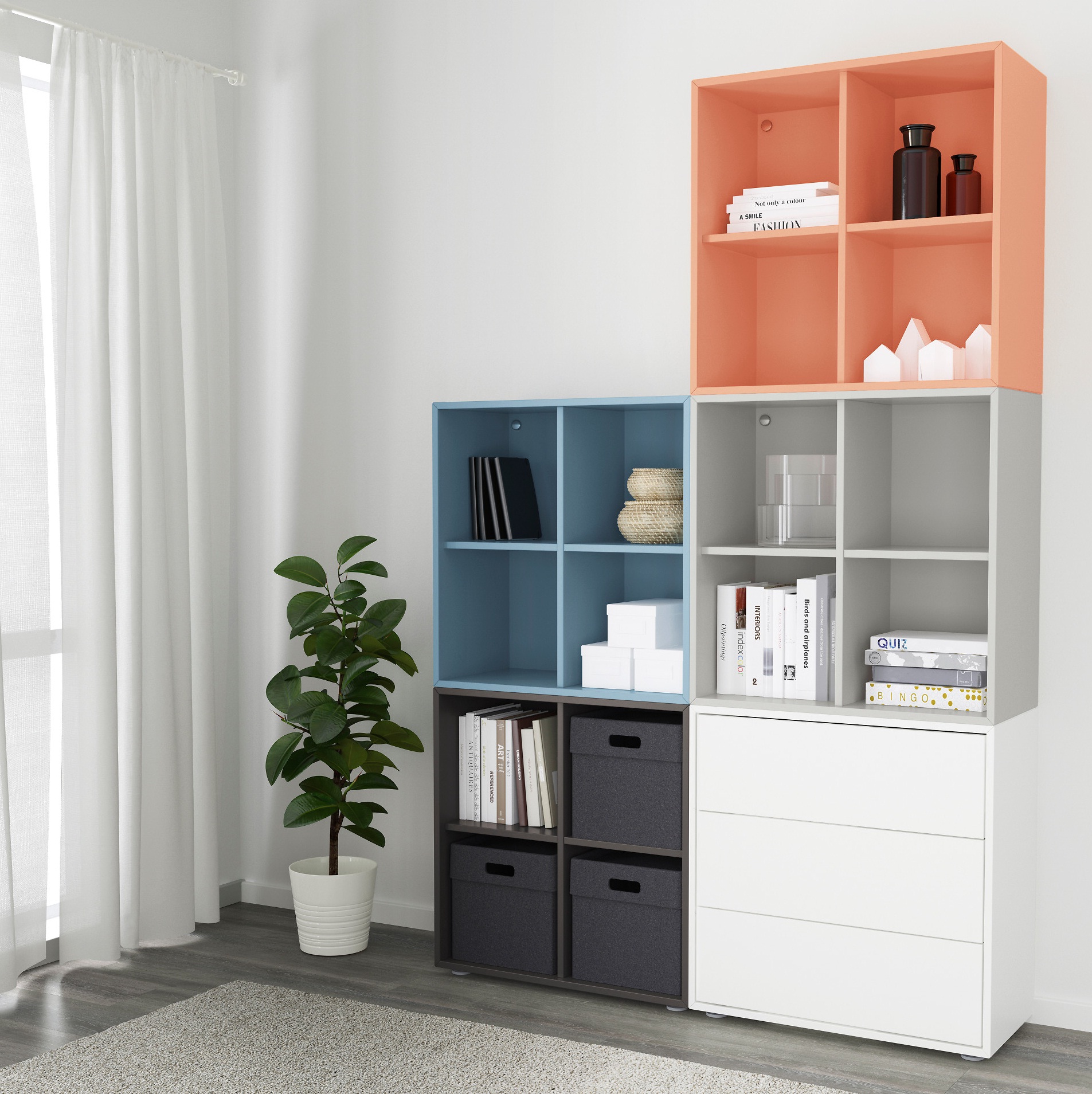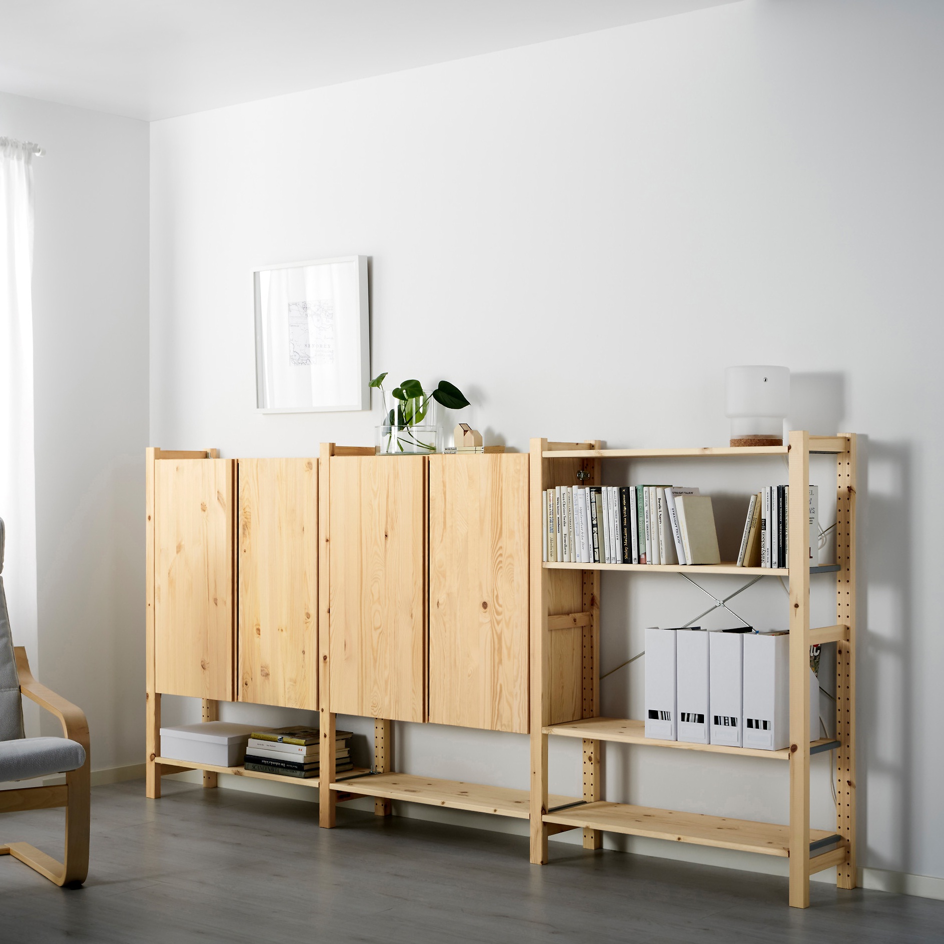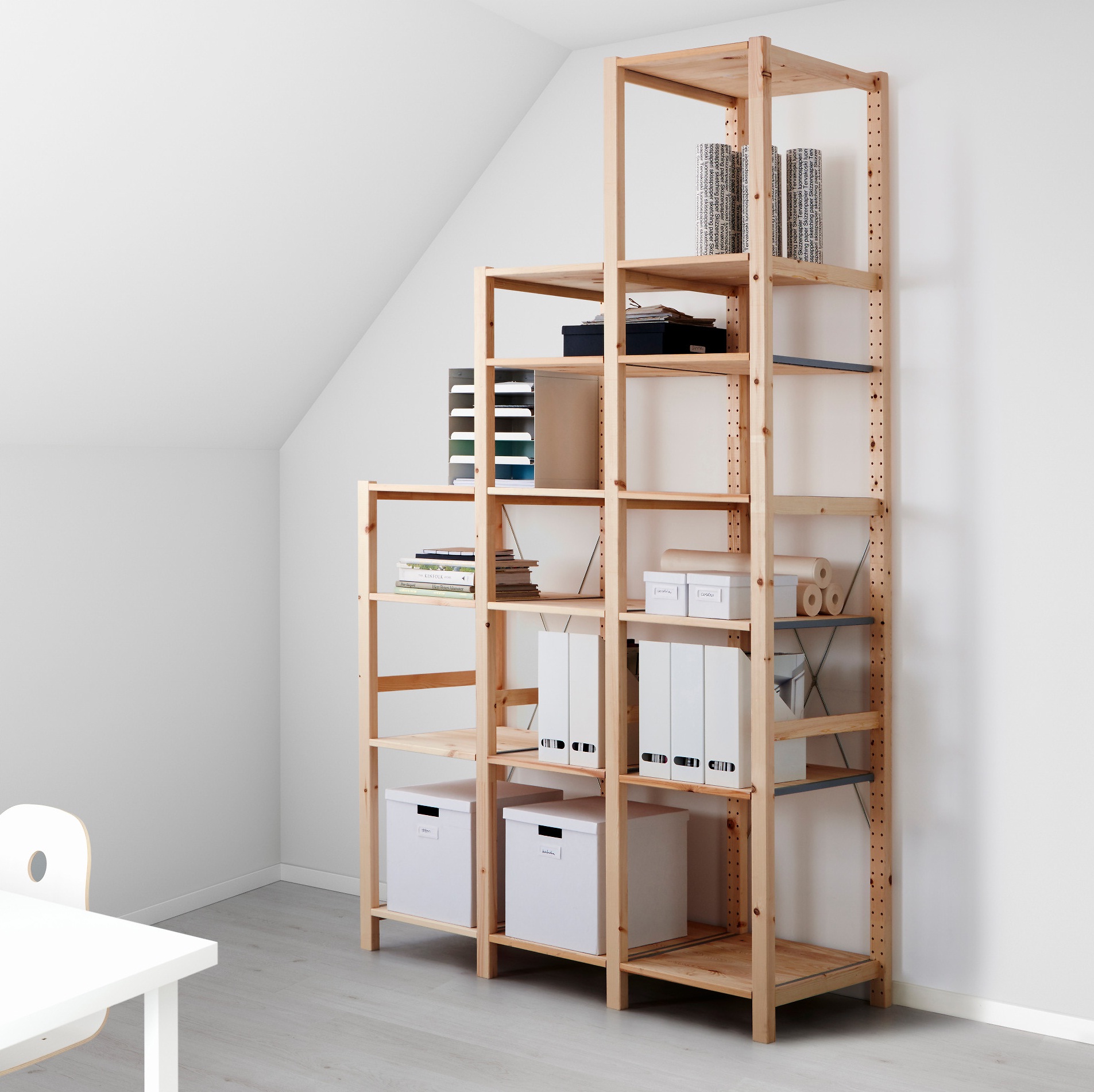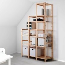 Series for creative individuals. Shelving "Ivar" fit a large amount of different things. On such open storage systems, additional drawers or boxes for smaller things look good.You can make your own special combinations of colors and arrangement of things, as well as diversify the filling with different formats: cardboard boxes, wicker baskets. Papers and documents will fit perfectly in special vertical folders or any other files.