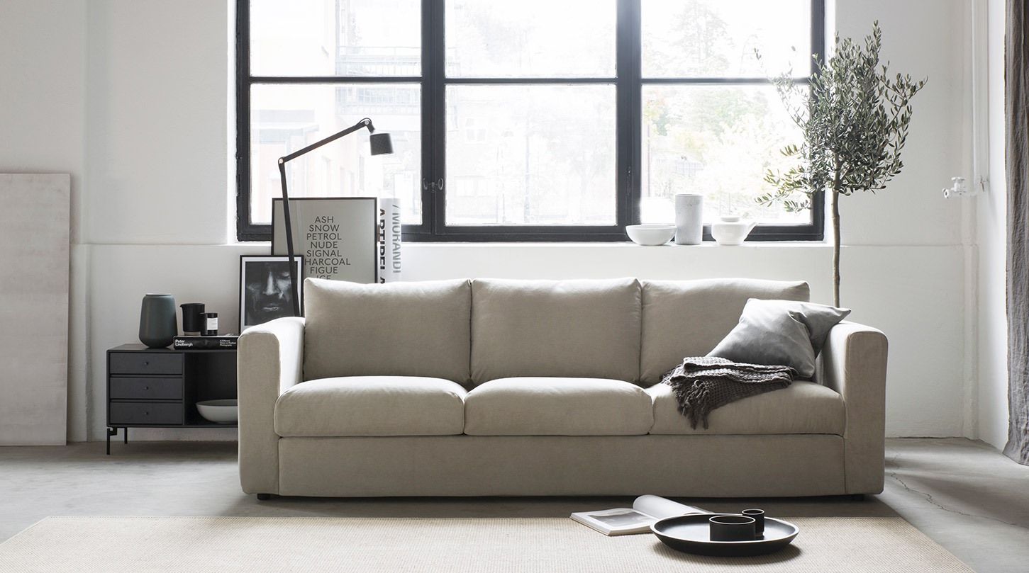 This series is notable for its particularly smooth lines and its classic form. Sheathing sofas made of natural cotton. The color solution offers light soft shades.