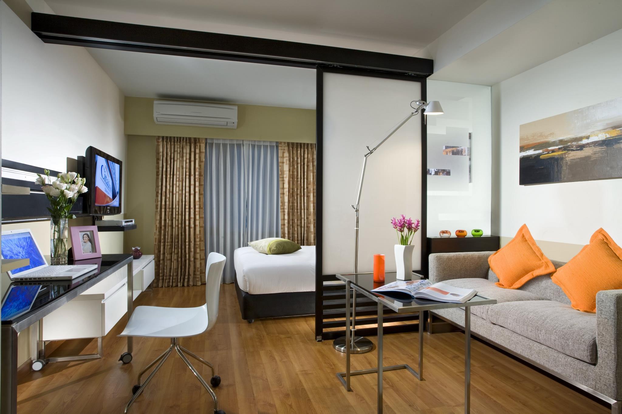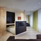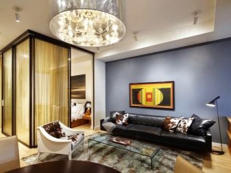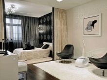If you need to place in one room a bed for rest and furniture for a living room, then it is important to do it right. With a convenient location of all entrances and exits to the room, you can make a simple partition, which will divide the space. This can be done with the help of a plasterboard wall, which after creation can be decorated as you please, creating the most pleasant option for both parts of the room.