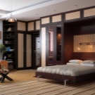 To lift the bed during the day did not catch the eye, there is a very simple option niche decor for her in the form of decoration under the usual wardrobe. Best of all, it will look with mirrored doors that will help increase the space of the room and make it lighter and lighter. However, there is a minus in such a design, because every day it is difficult to fold and lay everything out anew, especially if we are talking about a fragile woman or a man of an age.