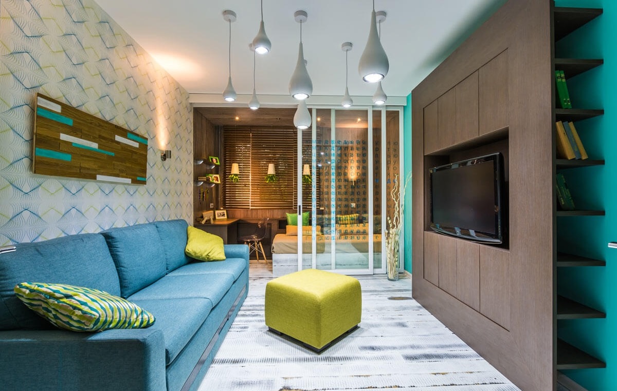 In case your living room has to combine the functions of a sleeping place as well, the most appropriate option would be the separation of two conditional rooms not only by a partition, but also using different color solutions. The design of any living room is a complex task, in the solution of which it is necessary to take into account various factors, including: