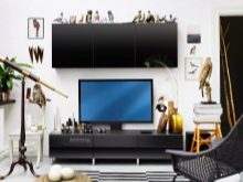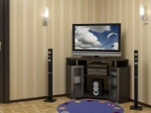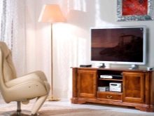 The most common option for installing a TV is a cabinet. It is practical, small in size and reliable stability. In the furniture stores are cabinets of various shapes and designs: