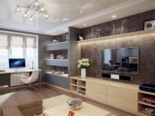 For rooms with a small area, you can purchase mini-walls and slides with a niche for a compact TV.
