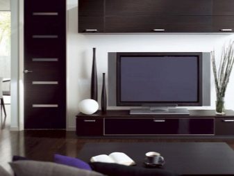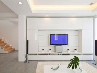 The choice of cabinets directly depends on the size of the TV, the availability of related equipment, the style used in the design of the living room, as well as the size of the room and the material from which the furniture is made.