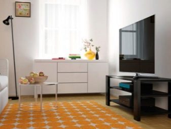 Another great option for a small living room is the TV stand. Positive aspects of using a television stand in the interior of the room: