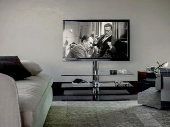 - Wall stand saves space, but the TV on it, as a rule, is strictly fixed, therefore, it will not be possible to turn and move it.
