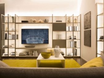 When choosing such an item for the living room interior, it is necessary to take into account that there are no universal models of racks. There are floor and wall structures: