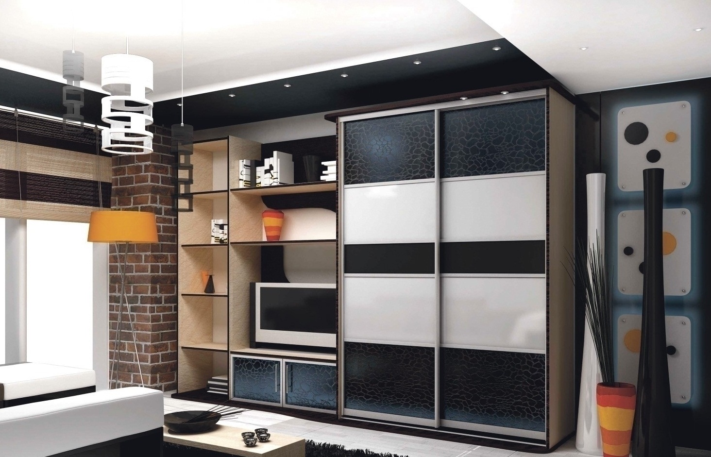 - Wardrobe, which is also equipped with a niche for TV. This model is practical, capacity, original design and is ideal for any interior.
