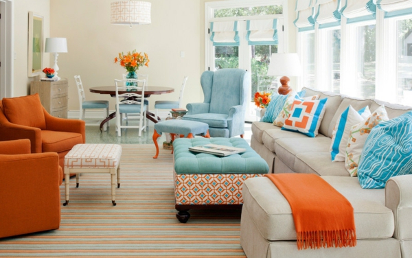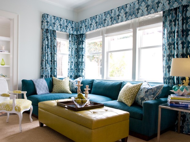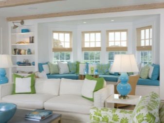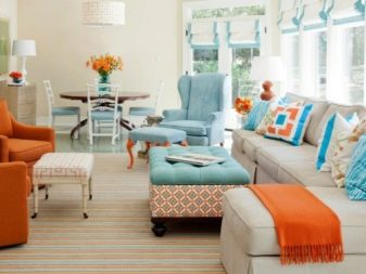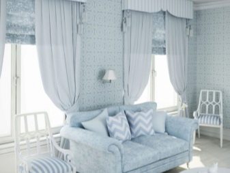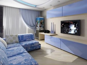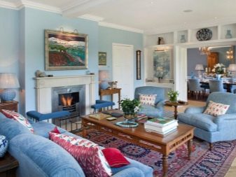 Do not forget about the combination of colors. That the drawing room was not monotonous and boring, combine blue with other color.