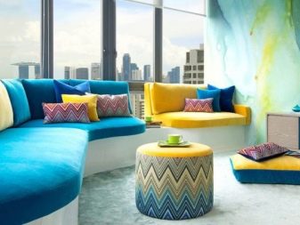 - Bright cushions on the sofa can be darker than the main shade of the interior.