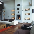 Using a different surface texture will help to highlight a niche in the background of the room: wood, stone, glassmosaic, panel, metal.