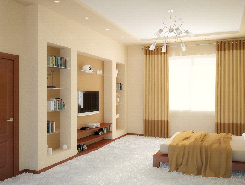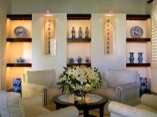 For rooms with narrow long furniture, a horizontal recess is suitable, while the vertical one will fit perfectly next to a window or door against a background of large furniture. Consider the option of a corner niche: without cluttering the space, it will bring freshness into your interior. In addition to the standard niches in the wall, today are very popular floor. They are used for large vases, TV. For masking the curtain eaves use niches in the ceiling, creating the effect of flowing textiles from the ceiling. Whichever niche place you choose, It is important to remember that it should not be blocked by furniture.