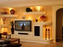 - Increasingly, apartment owners, self-thinking design, prefer to hide equipment in the grooves. In addition to a TV or stereo system, a fireplace or an aquarium looks great in a niche.