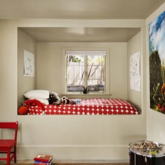 - A deep niche can be used for a place of rest or a children's corner, separating it with a suitable fabric.