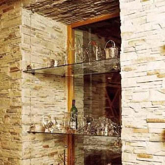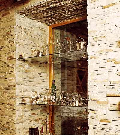 Decorate a niche using stone texture in several ways. In this photo, the corner niche is only partially decorated with stonework.