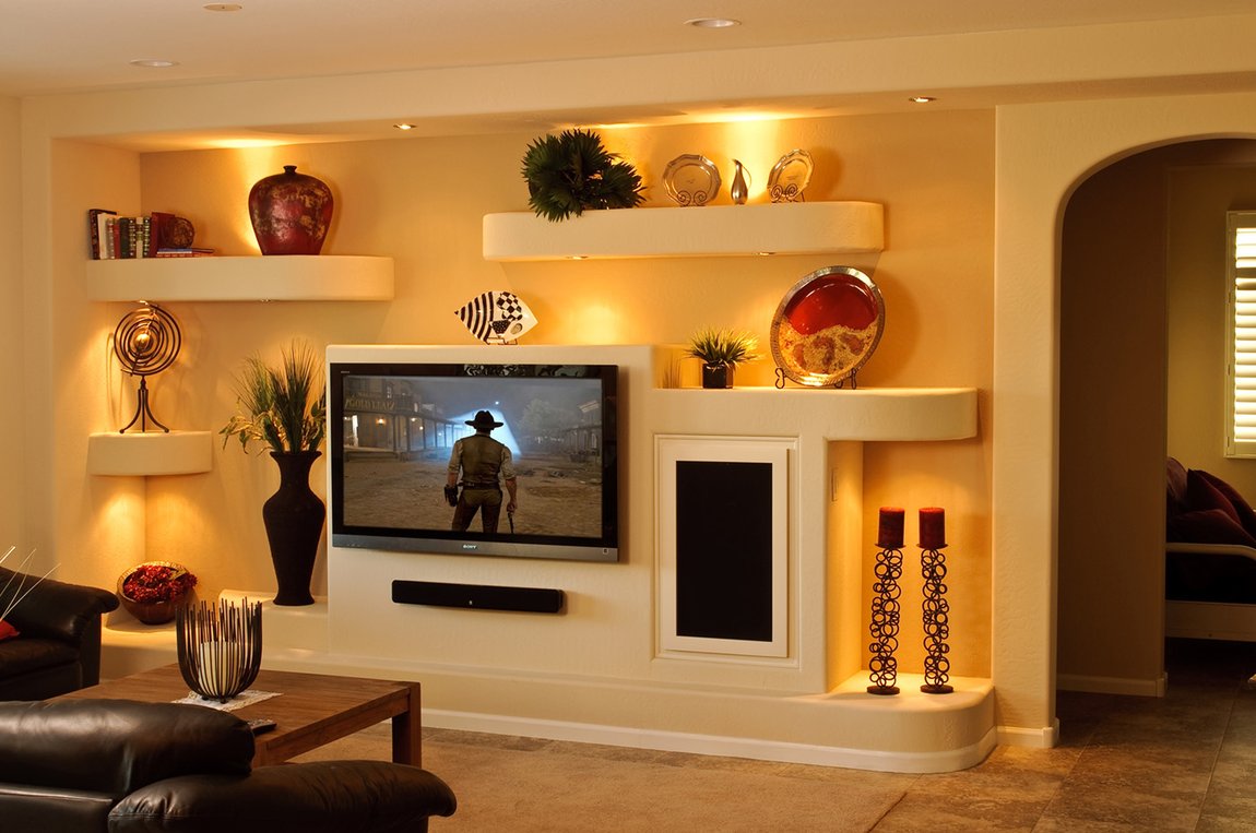 Living room interior design: decorating a plasterboard niche
