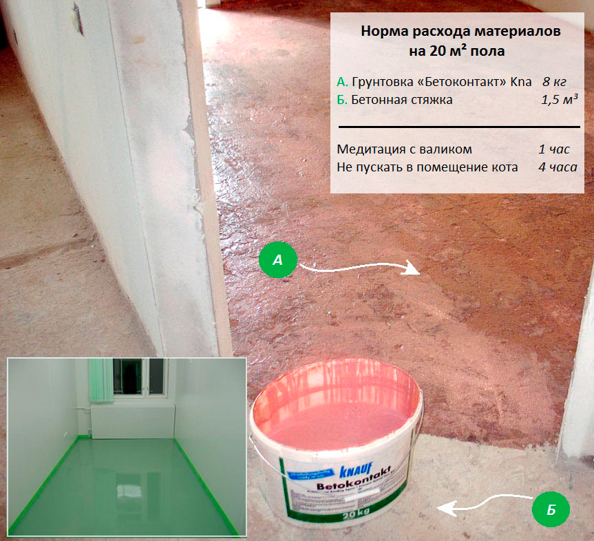When reducing the amount of concrete contact, adhesion will also decrease - the interaction of the base and the new coating, but even this is not the worst. Do not forget that one of the purposes of concrete contact is waterproofing.