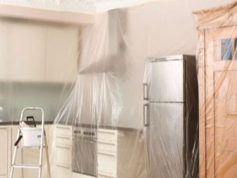 Before starting work, close the windows, floor and furniture with polyethylene. The tool is well washed off only before drying, in the future it is much more difficult to remove.