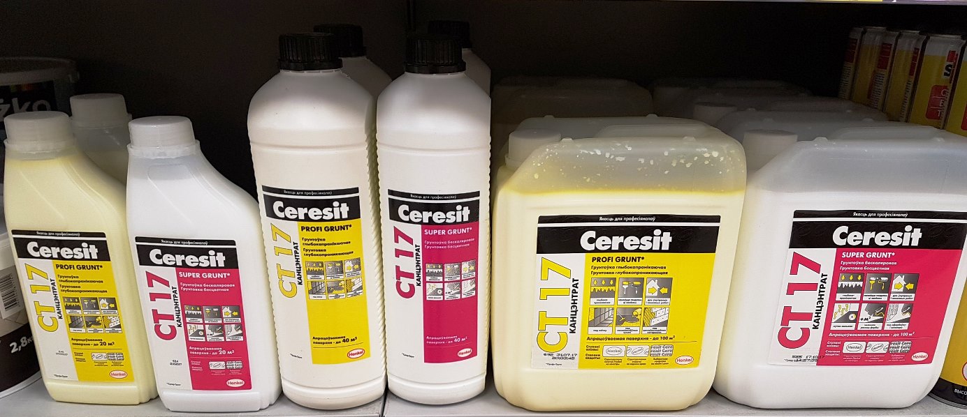 Ceresit primers are presented in a wide range - universal deep penetration compositions, concrete contact, concentrated mixture, antifungal primer and others. Let us dwell on the most popular varieties.