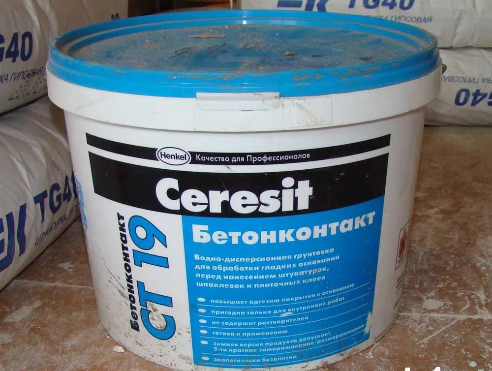 Well, in especially "hard" cases when it is necessary to process cast concrete, glass, or lay tiles on a tile, use concrete-contact mixture. It will ensure maximum efficiency and durability of the finish.
