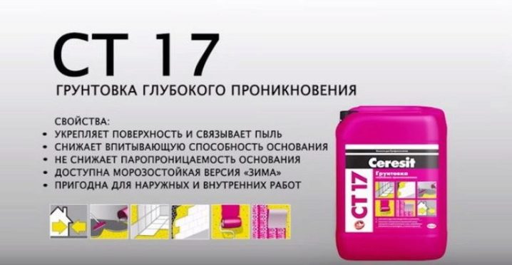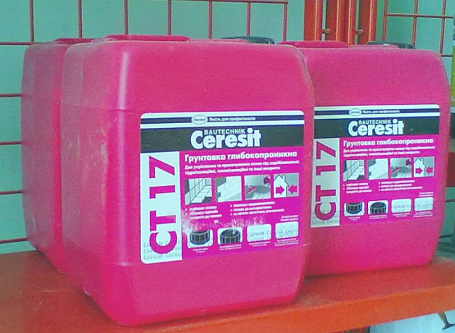CT17 is applied on concrete, gypsum plasters, cement coatings and brick foundations. The price of a pack of 10 liters of primer of this modification in 2017 was 600 rubles.