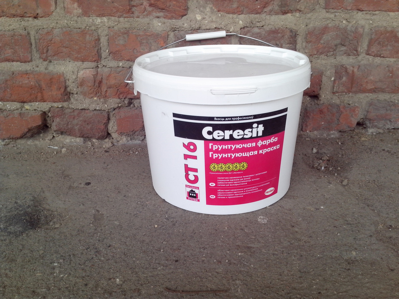 Ceresit ST 16 is widely distributed when carrying out external and internal works. Soil strengthens the base and increases adhesion. The mixture includes a special color scheme, thanks to which the surface after treatment acquires a super-white color and can be used for thin light wallpaper or paint.