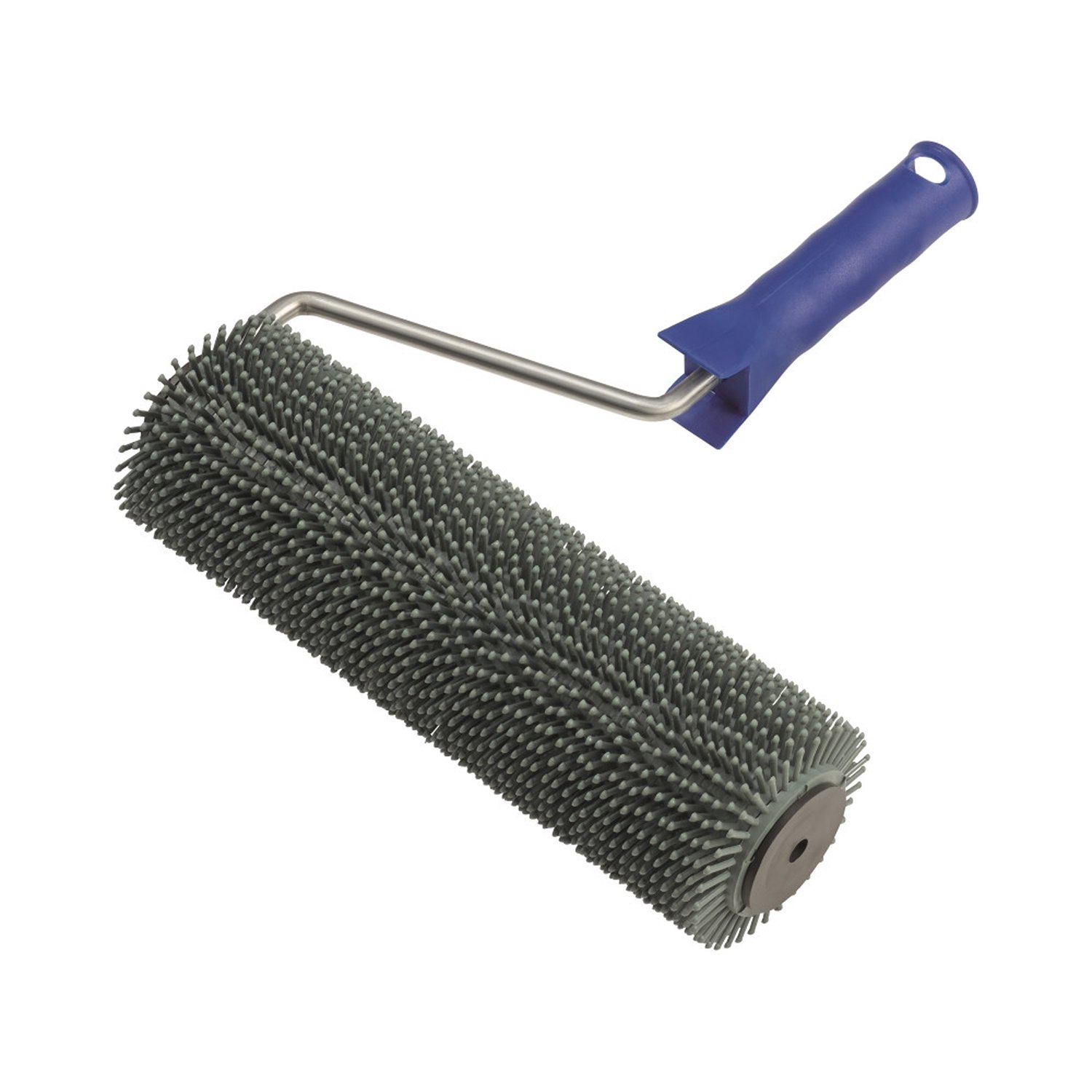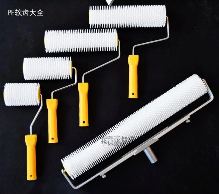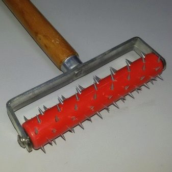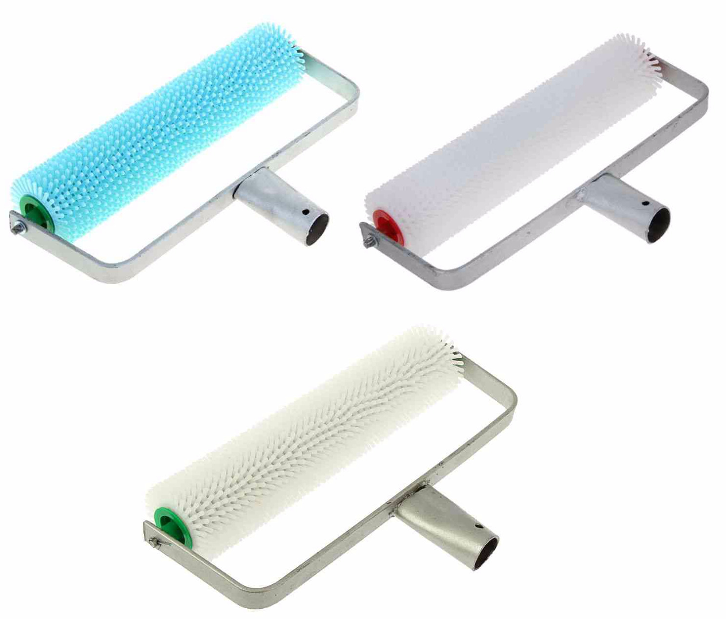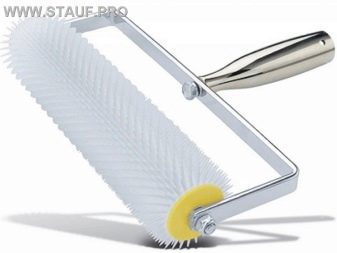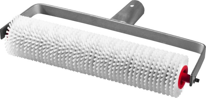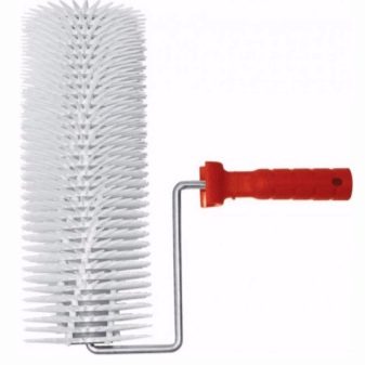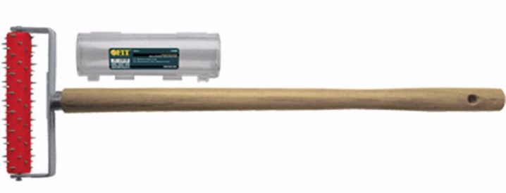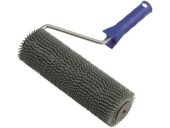 Needle roller is indispensable for removing air from a liquid polymer or concrete solution. The cylindrical base of the roller consists of a handle and a substrate, which is covered with a needle-shaped material. The handle, in turn, is metal, plastic or wooden. Rollers made of metal are heavier, they are strong and durable, convenient for bending drywall, working with old wallpaper. Often, manufacturers equip such products lengthened handle.